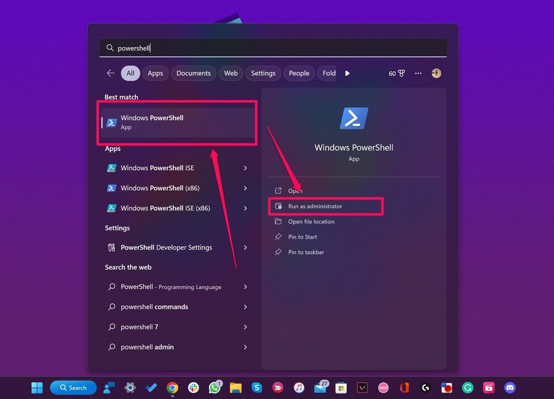 2.BulPowershell AracıVe tıklayınYönetici olarak çalıştırbunun için seçenek.