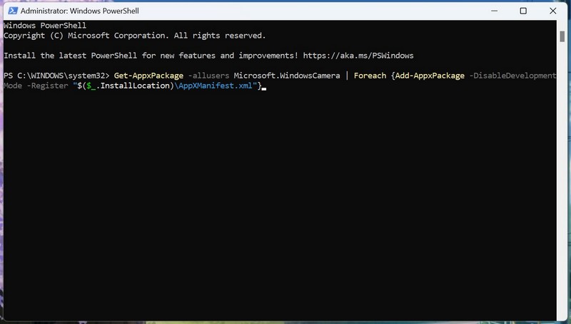 Şimdi, Windows 11 PC'nizdeki veya dizüstü bilgisayarınızda zoom sorununda çalışmayan kamera ile yüzleştiğinizde deneyebileceğiniz başka bir şey, PowerShell'i kullanarak kamera donanımını yeniden kaydetmektir. Bu, kamera ayarlarınızı sıfırlar ve bunları varsayılan değerlerine geri yükler. PowerShell'i kullanarak Windows 11'deki kamerayı yeniden kaydetmek için aşağıdaki adımları izleyin:
