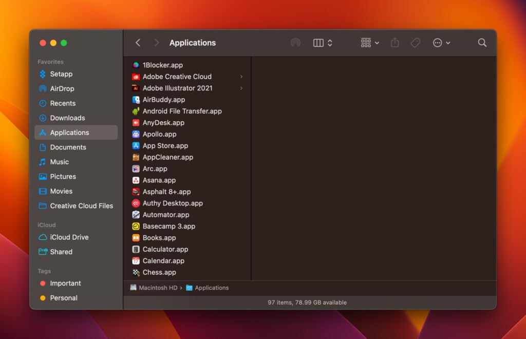 2.GitBaşvuruKenar çubuğundan klasör. Eğer bulmazsan, basınCMD+Vardiya+G, tip/Uygulamalarve vurGir/iadeanahtar.