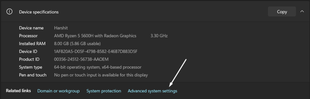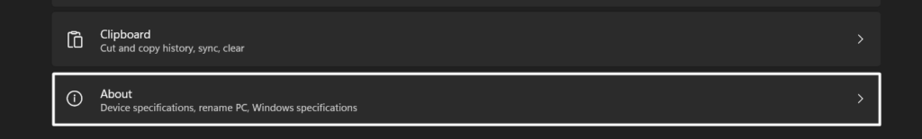 1.KullanınWindows + IKısayma açmak içinAyarlar Uygulaması, sonuna kadar kaydırın ve tıklayınHakkında.