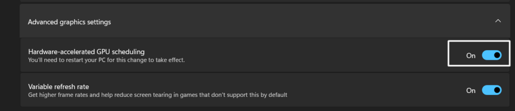 Masaüstü Pencere Yöneticisi işlemi çalışırken sisteminizin kaynaklarının çoğunu kullanıyorsa,Windows 11 PC'nin GPU sürücüsünüzü yükseltme. Bu sorunu çözmezse, PC'nizde donanım hızlandırılmış GPU zamanlamasını (HAGS) devre dışı bırakmayı düşünün.