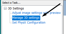 2.Üzerine tıklayın3D Ayarları YönetinSol kenar çubuğunda seçenek ve ardındanGlobal Ayarlarbölüm.
