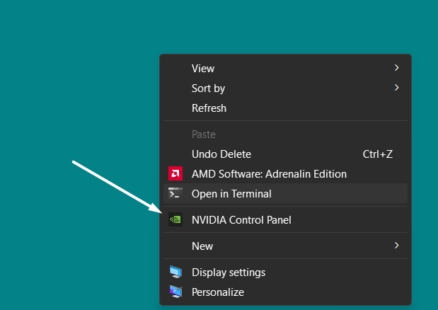 2.SeçmeNvidia Kontrol PaneliBağlam menüsünden sisteminizdeki NVIDIA kontrol panelini açmak için.