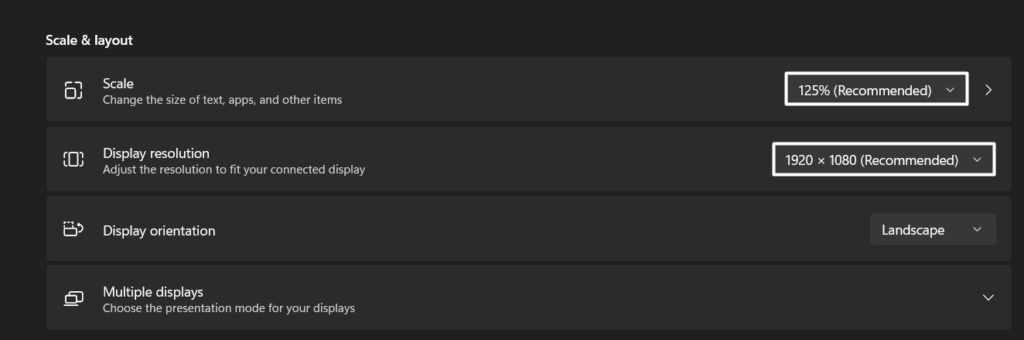 9. Önerilen ekran çözünürlüğü ve ölçeklendirme ayarlarını kullanın