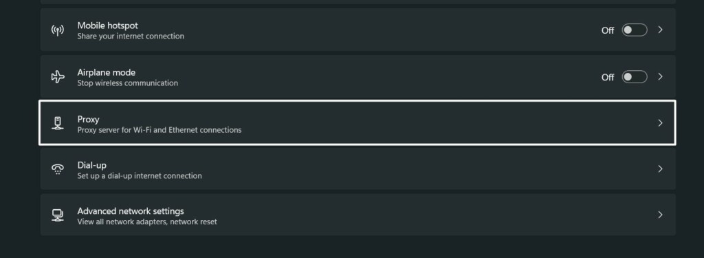 1.TıklayınVekilSeçenekAğ ve İnternetTüm Proxy ayarlarınızı görüntülemek için pencere.
