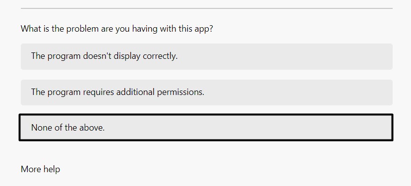 5.SeçinYukarıdakilerin hiçbiri.Bir sonraki ekranda seçenek ve sorun giderinin çalışmasına ve işini yapmasına izin verin.