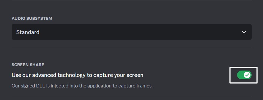 Bazı kullanıcılar, devre dışı bırakarak ekran payı ile ilgili sorunları çözdüklerini söyledi.Ekranınızı yakalamak için en son teknolojimizi kullanınDiscord'un ayarlarında seçenek. Bu nedenle, aynı şeyi denemenizi ve sorunları çözüp çözmediğini kontrol etmenizi öneririz. Kapatmak için aşağıdaki adımları izleyin: