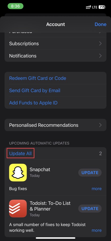 Yerel bir özellik olmasına rağmen, tüm uygulamalar varsayılan olarak sürükle ve bırak özelliğini desteklemez. Bu nedenle, üçüncü taraf uygulama geliştiricilerinin uygulamalarına destek eklemesi gerekir, böylece sürükle ve bırak özelliğini kullanabilirsiniz. Sonuç olarak, günlük uygulama güncellemelerini alışkanlık olarak kontrol etmek en iyisidir. İPhone'unuzdaki uygulamalar için uygulama güncellemelerini nasıl kontrol edebilirsiniz: