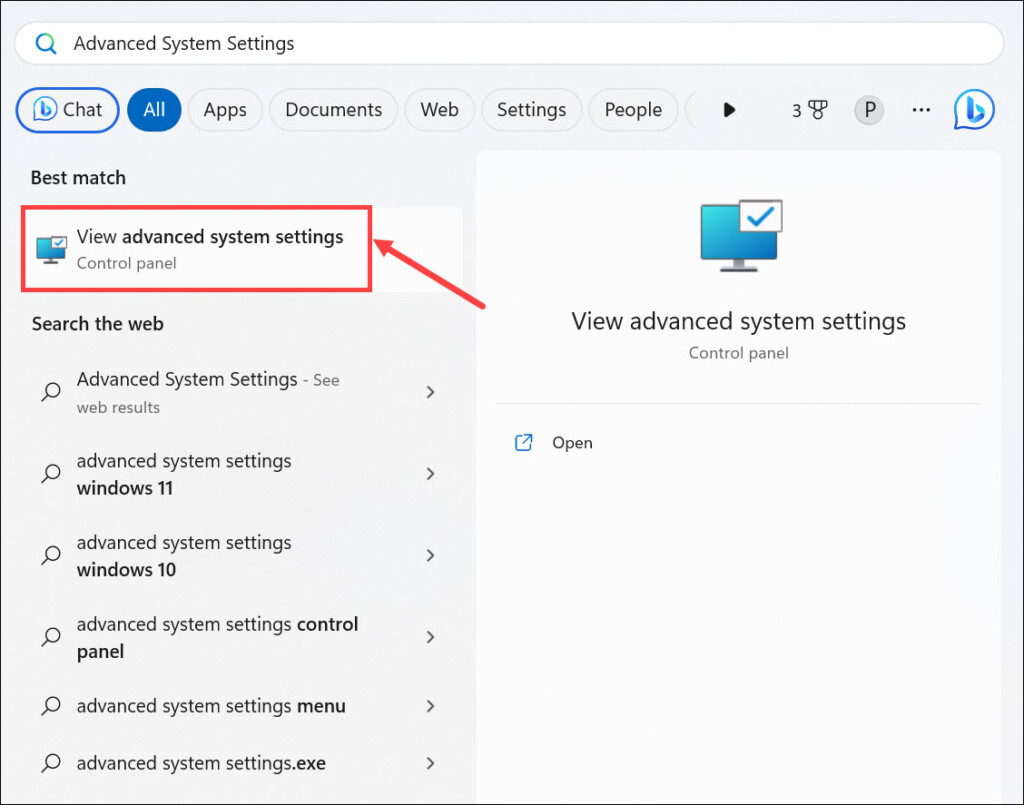 1.Arayın "Gelişmiş Sistem Ayarları”Ve başlatmak için simgesine tıklayın