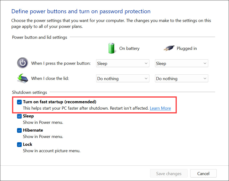 Hızlı başlatmayı devre dışı bırakmak, Windows 11'de çift önyükleme menüsünün gösterilmesini önleyebilecek çatışmaların çözülmesine yardımcı olabilir. Windows 11'de hızlı başlatmayı devre dışı bırakmak ve potansiyel olarak gösterilmeyen çift önyükleme menüsünün sorununu düzeltmek için şu adımları izleyebilirsiniz: