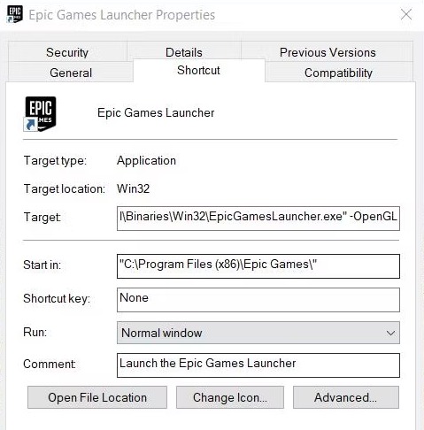 Bazı kullanıcılar bunu söylediEpic Games Launcher'ın hedef özelliklerini değiştirme kısayolBu, açılmasını durduran kısayolla ilgili tüm sorunları ortadan kaldırdığı için sorunu onlar için düzeltti.