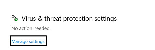3.TıklayınAyarları YönetinMetin ve geçişi kapatınMicrosoft Defenderbölüm.
