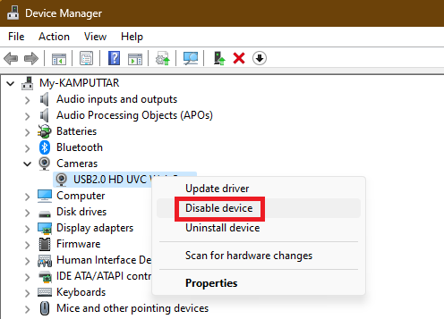 2.Sürücüye sağ tıklayın veDevre dışı bırakmaksürücüseçenek.