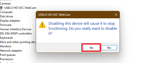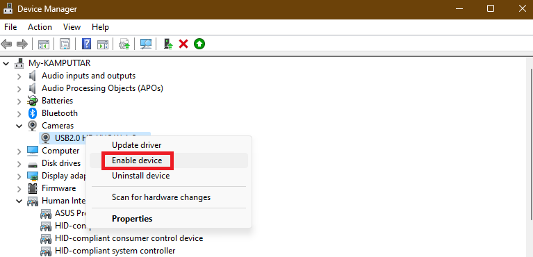 Cihaz sürücüsünü devre dışı bırakın ve yeniden etkinleştirin