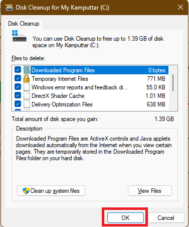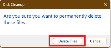 4.Silinatı tıklayarak onaylayınDosyaları sil.