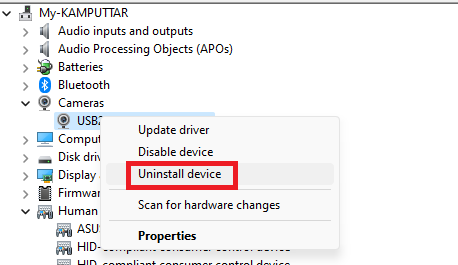 2.Aygıt sürücüsüne sağ tıklayın ve seçinCihazı Kaldır.
