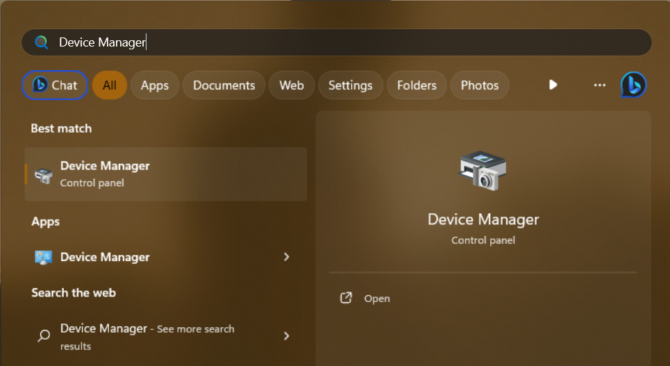 1.Başlat menüsünü açın. TipCihaz yöneticisiVe tıklayınAçıkseçenek.