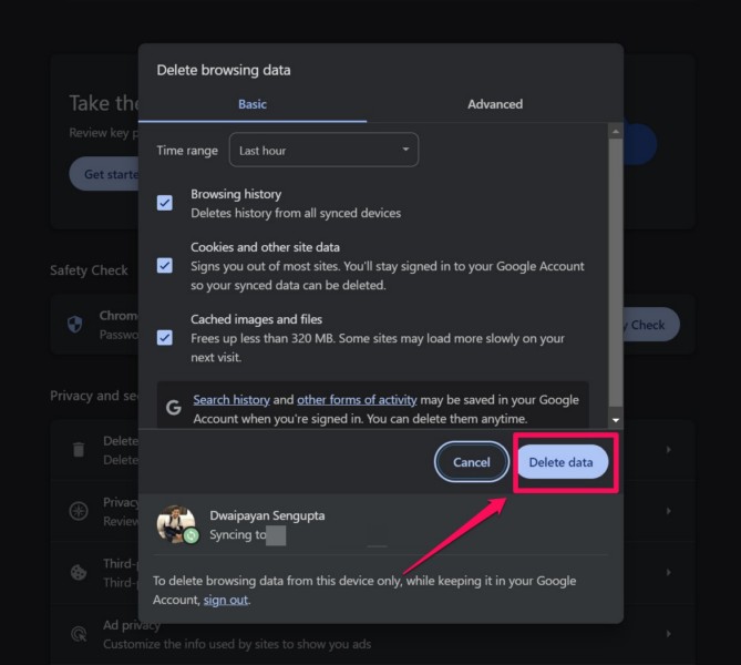 Çoğu Web tarayıcısı için işlem benzer olduğu için tarama verilerini nasıl temizleyeceğinizi göstermek için Google Chrome'u kullandık. Böylece, web tarayıcınızın tarama verilerini temizlemek için aşağıdaki adımları kullanabilir ve cihazınızdaki 2148073494 hatasını çözmeye yardımcı olup olmadığını kontrol edebilirsiniz:1.