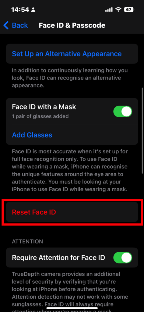 Yukarıdaki yöntemler çalışmıyorsa, yüz kimliğini sıfırlamanız ve tekrar ayarlamanız gerekebilir. Bunu yapmak önceki yüz kimliğini kaldıracak ve tekrar tekrar ayarlamanız gerekecektir. Bir iPhone'da Face kimliğini nasıl sıfırlayacağınız aşağıda açıklanmıştır.