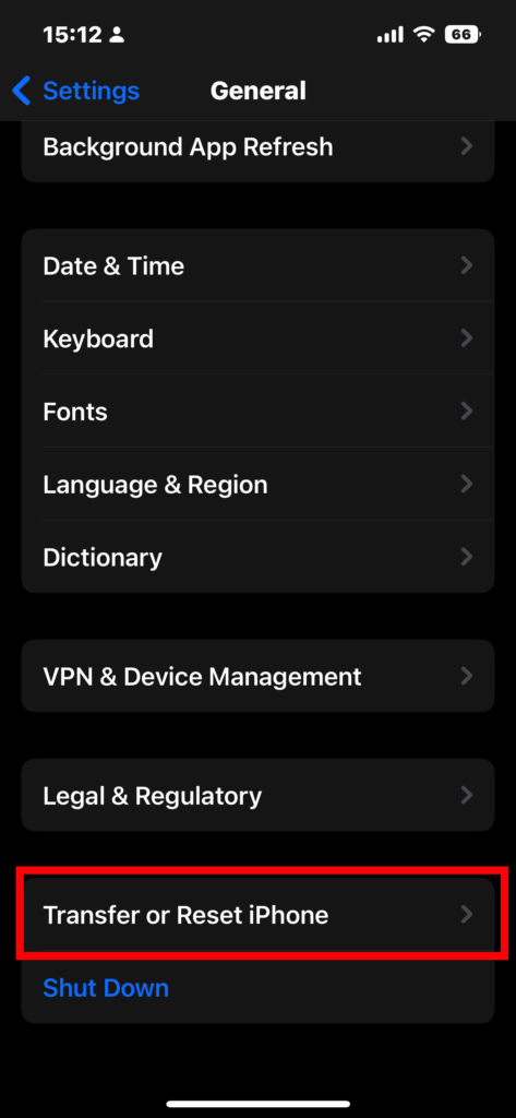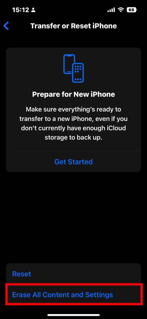 3.Sonraki, dibe doğru kaydırın ve üzerine tıklayınİPhone'u aktarın veya sıfırlayın.