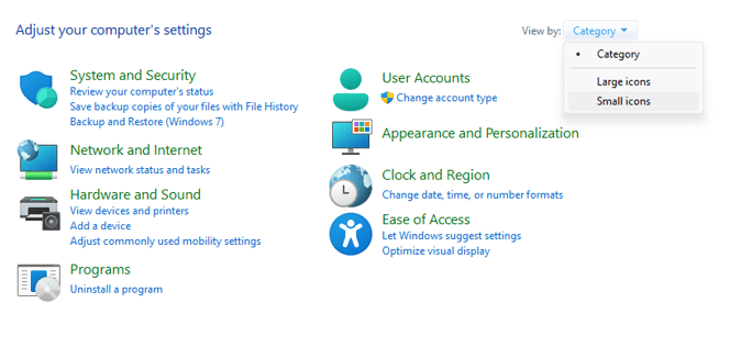 2. Adım:Küçük simgeler olarak görünümü seçtikten sonra Güç Seçenekleri menüsüne tıklayın.