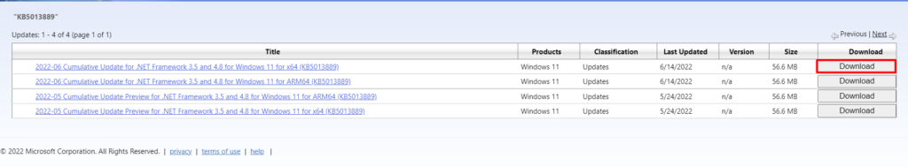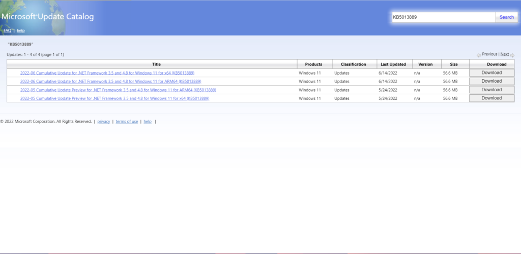 4.İndiremediğiniz Windows güncellemeniz eşleşen güncellemeyi bulun.