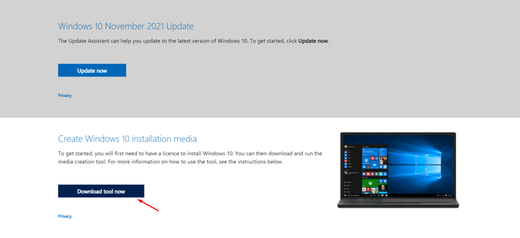 0x80080008 hatasını kaldırmanın bir başka kolay yolu, Medya Oluşturma aracını kullanarak yeni Windows 10 güncellemesini yüklemektir. Birçok kullanıcı, Windows Media oluşturma aracının yardımıyla hatayı çözdüklerini bildirdi. Aynı şeyi yapabilir ve yeni güncellemeleri uygun şekilde yükleyebilirsiniz. ISO görüntüsünü kullanarak Windows güncellemelerini yüklemek için adımları izleyin.