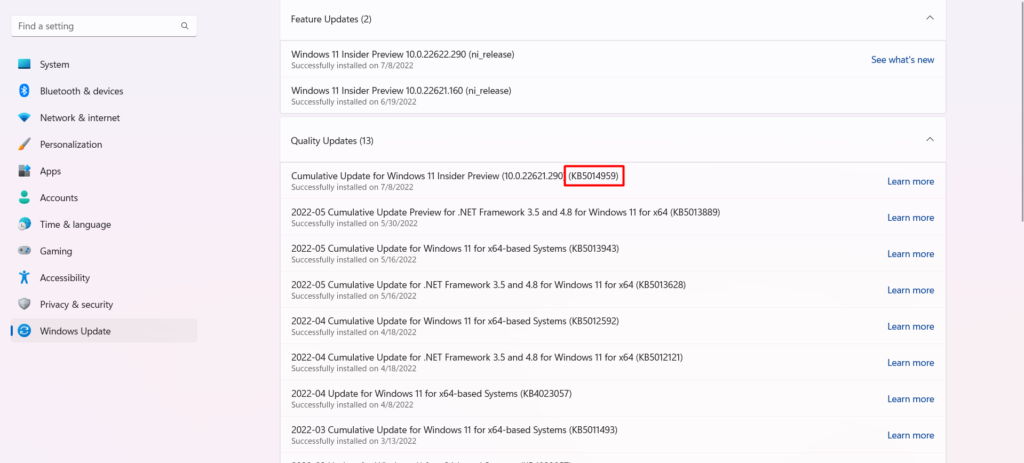 1.AçWindows Güncellemesiayarlar ve not edinKB seri numarasıgüncellemenin yanında yazılmıştır.