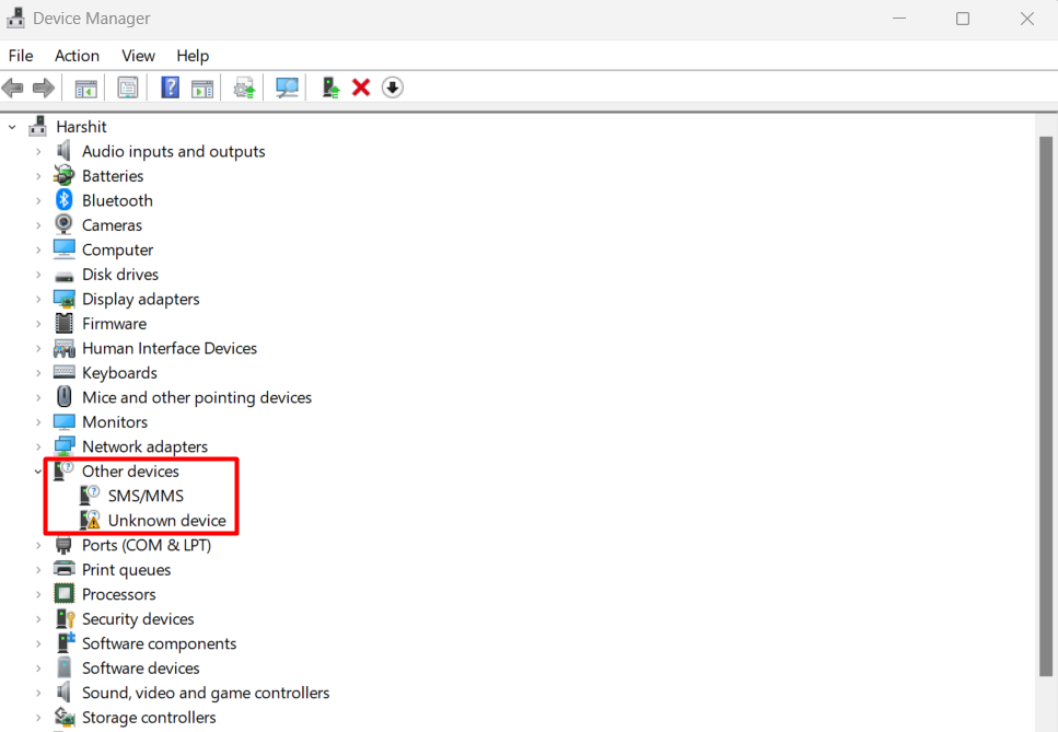 3.TaşınDiğer CihazlarBölümCihaz yöneticisipencere.