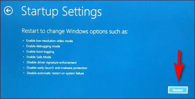 11.Başlangıç ayarlarını gördükten sonra,Yeniden başlat düğmesi.