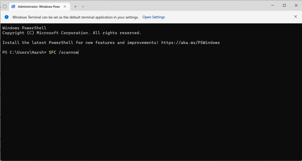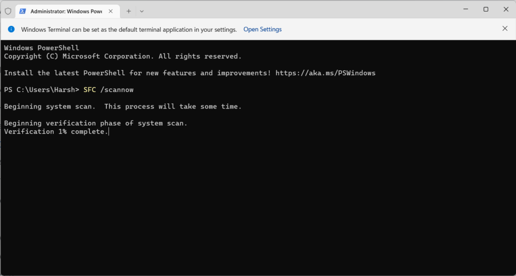 1.Yeniden açıldıTerminal Uygulamasıve tip:SFC /Scannow