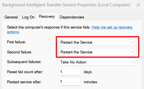 9.Seçmeİlk başarısızlıkVeİkinci başarısızlıkileHizmeti yeniden başlatın.