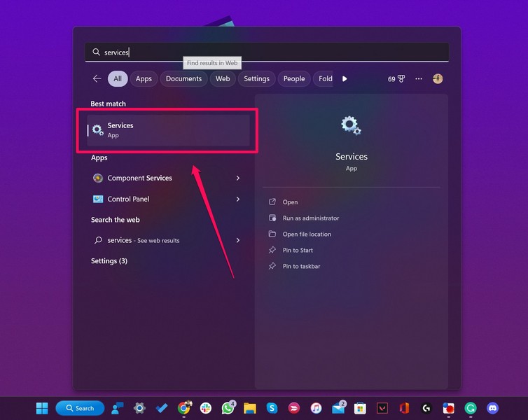 1.Windows'u açmak için Windows + S kullanın ve aramaHizmet.