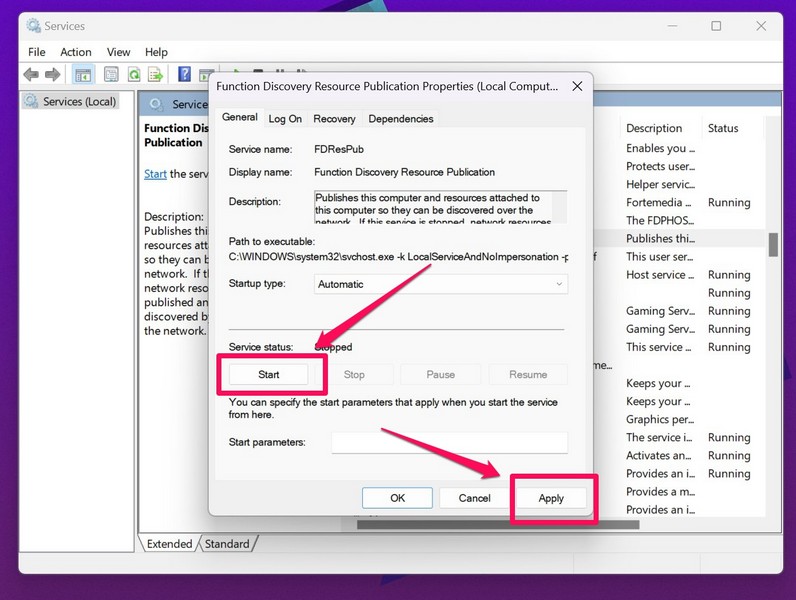 Şimdi, yukarıdaki yöntemler cihazınızdaki Windows 11 sayısında çalışmayan dosya paylaşımını çözemiyorsa, Windows 11'deki Fonksiyon Keşif Kaynak Yayın Hizmetini otomatikleştirmeyi deneyebilirsiniz.