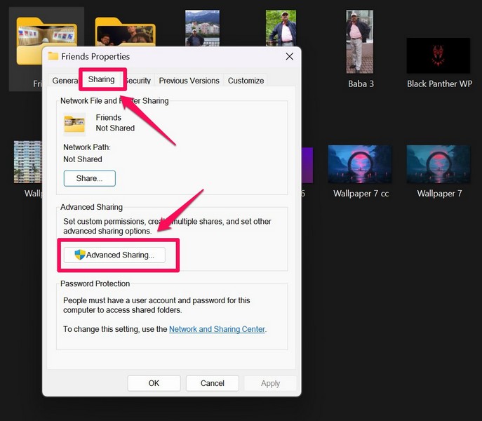 5. Windows 11'deki klasörler için gelişmiş paylaşımı etkinleştirin