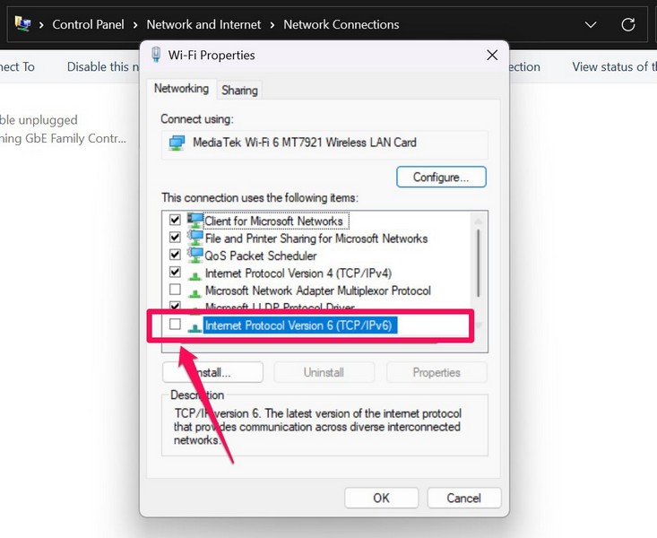 8. Windows 11'de IPv6'yı devre dışı bırakın