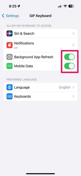 Şimdi, cihazı en son iOS 17'ye güncelledikten sonra iPhone'unuzda GIF klavyesi çalışmayan sorununu deneyimlemeye başladıysanız, GIF klavye uygulamasının etkin olup olmadığını kontrol etmek isteyebilirsiniz. Birçok kullanıcı için, GIF klavye uygulaması, cihazlarını en son iOS güncellemesine güncelledikten sonra iPhone'larında iMessage için devre dışı bırakıldı.