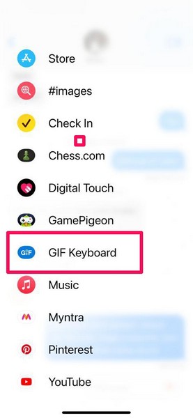 Mesaj uygulaması iPhone'unuzda yeniden başlattıktan sonra, listeden herhangi bir sohbet açın ve GIF klavyesinin iMessage App listesinde mevcut olup olmadığını kontrol edin.