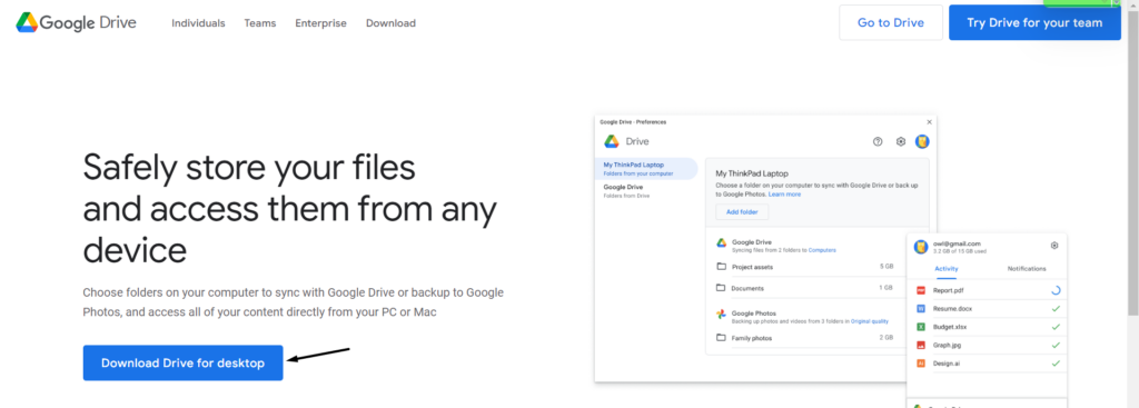 4.Google Drive indir sayfasında,Masaüstü için Drive'ı İndirindüğme.