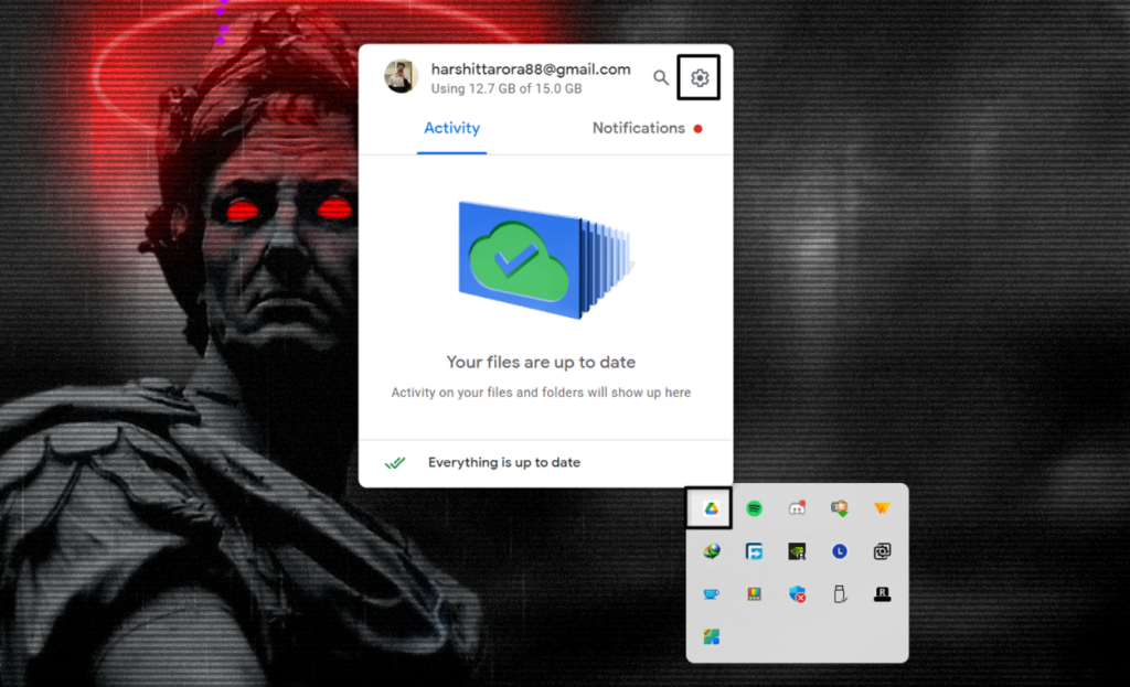 1.Google hesabının bağlantısını kesmek içinGoogle DrivePC'nin görev çubuğunda bulunan simge.