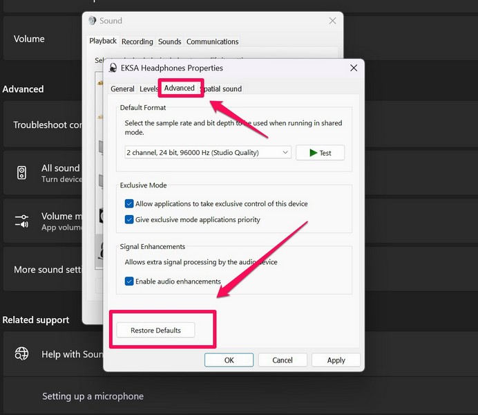 Bu nedenle, Windows 11'deki kulaklıklarınız için varsayılan ayarlara geri yüklemek için aşağıdaki adımları izleyin: