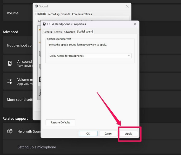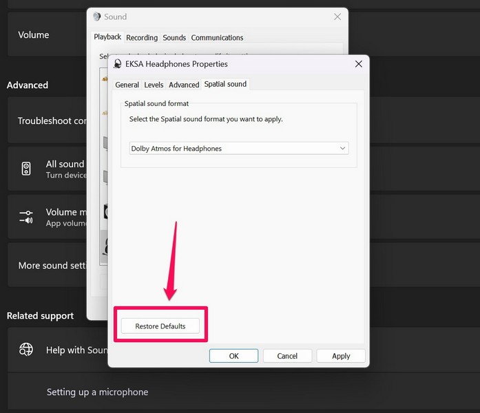 4. Windows 11'deki kulaklıklar için varsayılan ayarlara geri yükleyin