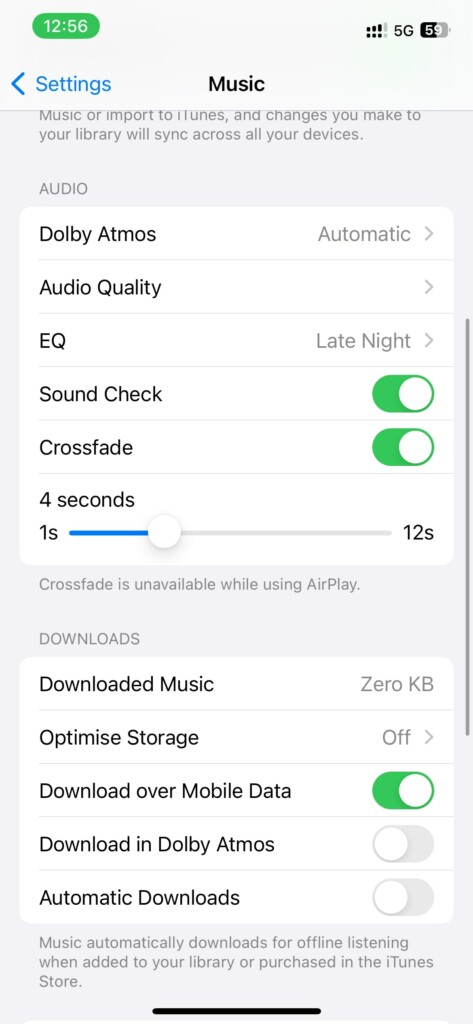 Müzik uygulamasında sorun yoksa, CrossFade özelliğini Settings uygulamasından devre dışı bırakmayı ve yeniden etkinleştirmeyi düşünmelisiniz. Nasıl yapılacağını öğrenmek için bu talimatları izleyin:
