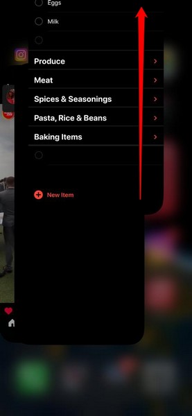 Bu nedenle, Hatırlatıcılar uygulamasını zorla kaplamanın ve iPhone'unuzda yeniden başlatmanın, bakkal listesini çözme sorununu çözme ve listenizi ilgili bölümlerle otomatik olarak güncelleme şansı yüksektir. Hatırlatıcılar uygulamasını zorla kapatıp iOS 17'de iPhone'unuzda yeniden açmak için aşağıdaki adımları izleyebilirsiniz:
