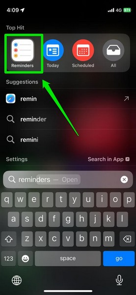 3.Kapatıldıktan sonraHatırlatıcılar uygulamasını bulunVeBaşlatmak için dokununYine.