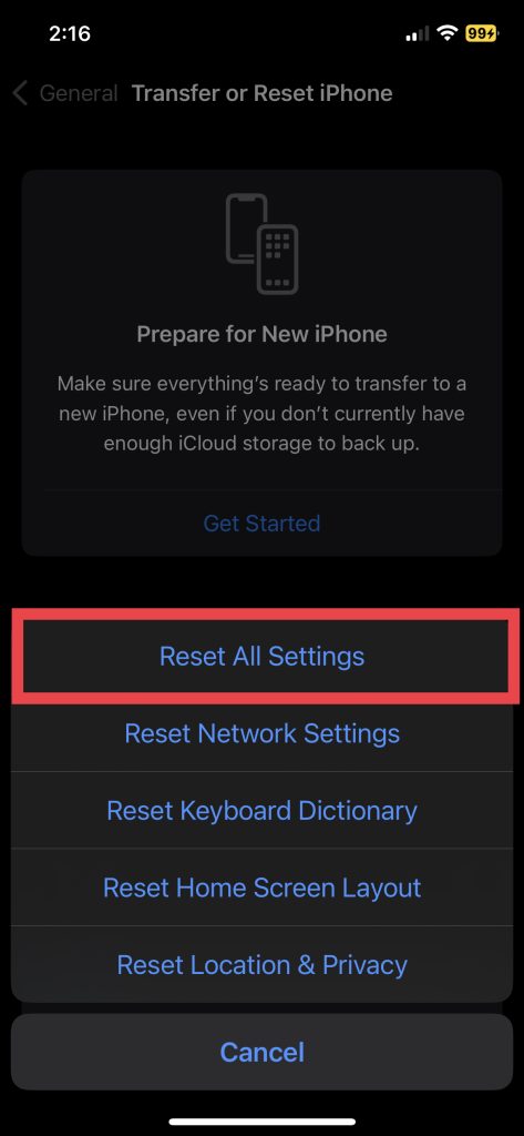 İPhone'unuzu yeniden başlattıktan sonra sorun devam ederse, tüm ayarları sıfırlamak, iPhone'unuzun problemini%80'in üzerinde şarj etmemeye çalışmaya değer olabilir. İPhone'unuzun ayarlarını sıfırlamak, tüm özelleştirilmiş ayarları siler ve bunları varsayılan durumlarına döndürür.