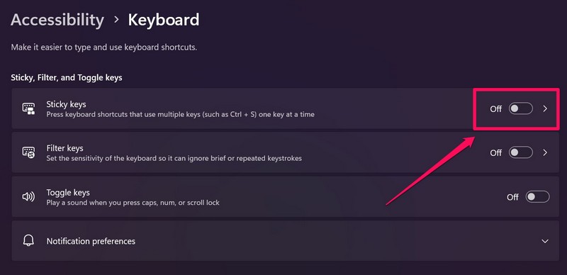 7. Windows 11'de yapışkan tuşları devre dışı bırakın