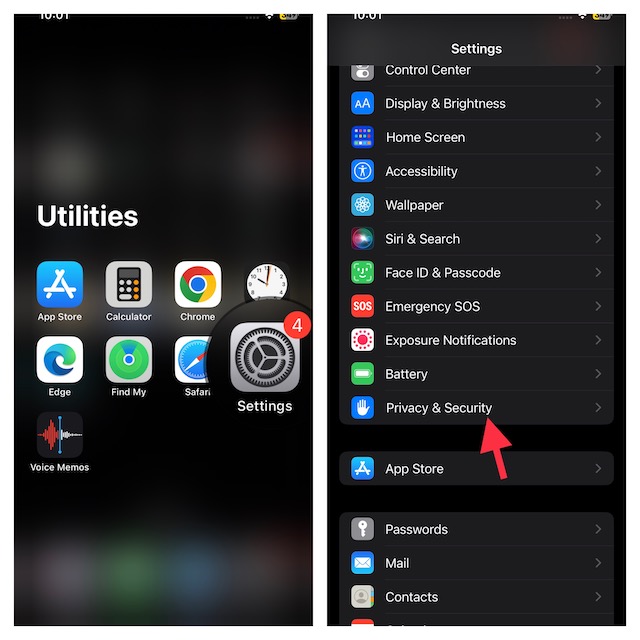 1.AçAyarlar UygulamasıiPhone'unuzda ve seçinGizlilik ve Güvenlik.