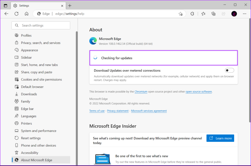 EDGE'nin eski bir sürümünü kullanmak, göz atarken birkaç hataya veya hataya neden olabilir. Windows 11'deki Microsoft Edge tarayıcısını güncellemek için şu adımları izleyin: