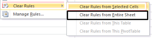 3.SeçinTüm sayfadan net kurallarKoşullu biçimlendirmeyi temizlemek için açılır menüden seçenek.